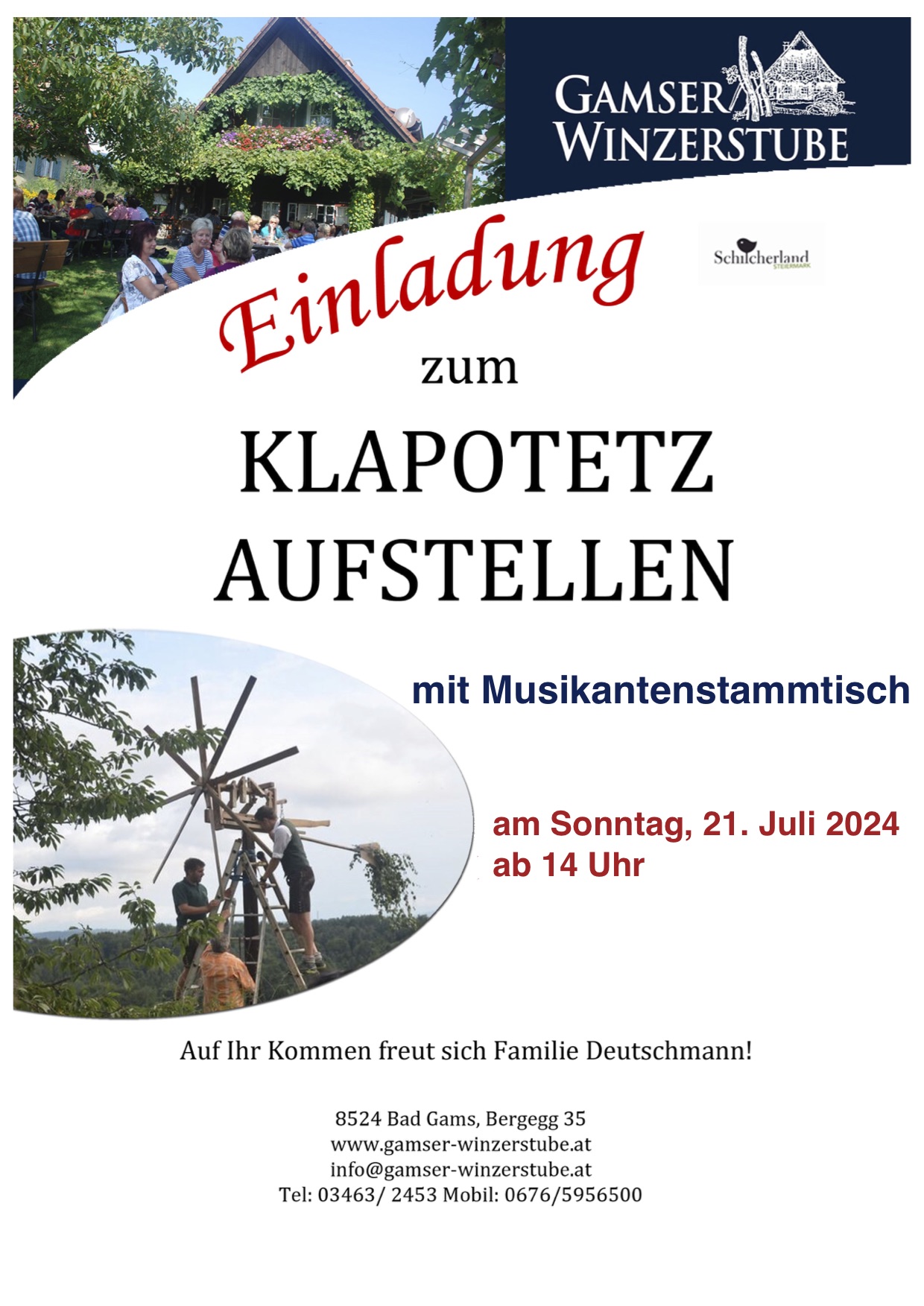 Am Freitag dem 20. Juni gibt es im Kurpark von Bad Gams eine Sonnwendfeier, bei der wir im Einsatz sind. Deshalb haben wir den Buschenschank an diesem Tag geschlossen.